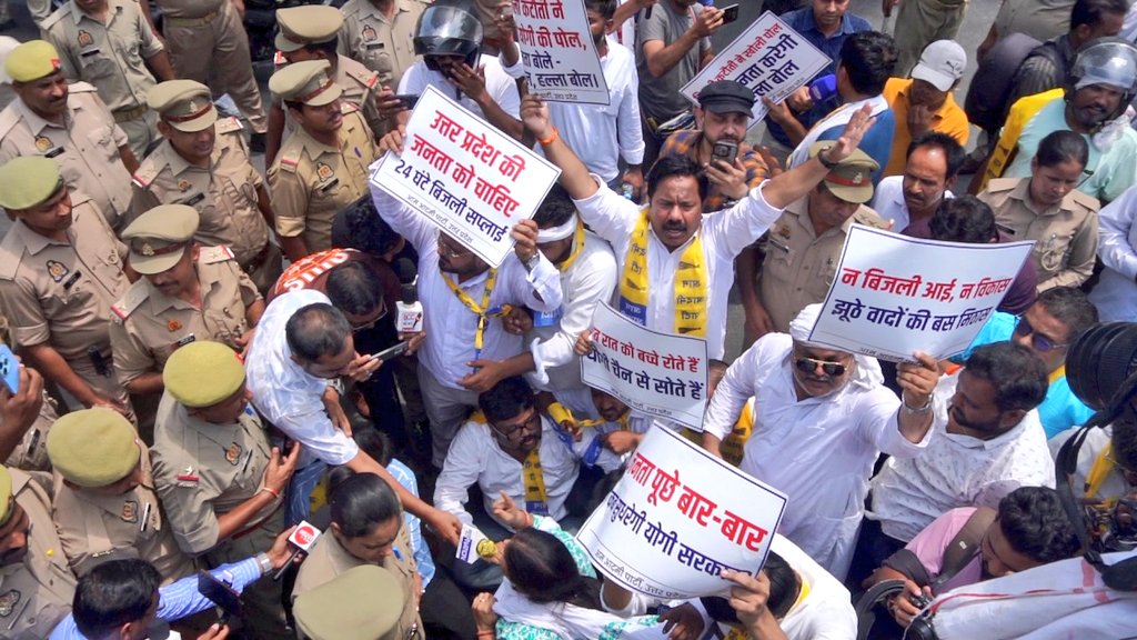 आम आदमी पार्टी (AAP) ने उत्तर प्रदेश में लगातार हो रही बिजली कटौती और खराब विद्युत आपूर्ति व्यवस्था के खिलाफ बुधवार को प्रदेशभर में जोरदार प्रदर्शन किया।