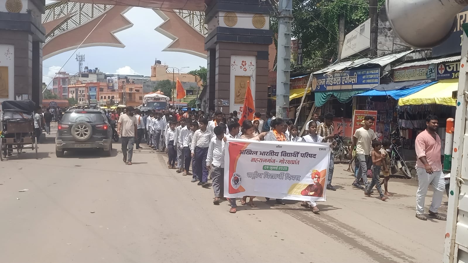 पर्दाफाश न्यूज़ ब्यूरो महराजगंज :: अखिल भारतीय विद्यार्थी परिषद (एबीवीपी) के 77वें स्थापना दिवस के अवसर पर बुधवार को सोनौली नगर में एक भव्य शोभायात्रा का आयोजन किया गया। यह यात्रा नगर के ऐतिहासिक श्रीराम जानकी मंदिर प्रांगण से प्रारंभ होकर भारत-नेपाल सीमा के नो मैन्स लैंड होते हुए नगर के प्रमुख मार्गों से होते हुए पुनः मंदिर परिसर में आकर सम्पन्न हुई।
