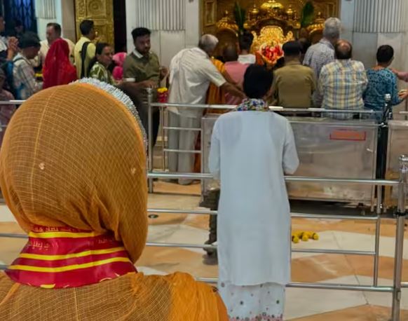 पलक के पीछे गणपति जी नजर आ रहे हैं। इस दौरान मंदिर के पंडित जी भी व्यस्त नजर आ रहे हैं। दूसरी तस्वीर भी मंदिर के अंदर की ही है। इस तस्वीर में पलक गणपति के सामने खड़ी हैं और बाकी लोग वहां प्रभु के दर्शन करते दिखाई दे रहे हैं।