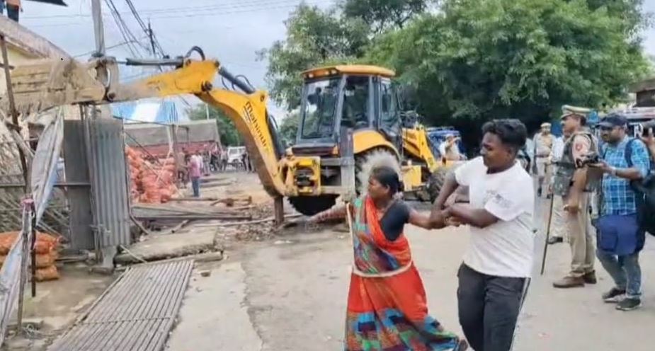 मुरादाबाद:- अतिक्रमण के खिलाफ कार्रवाई करने पर मंडी सचिव संजीव कुमार की उसके कार्यालय में घुसकर खुद को विधायक बताने वाले व्यक्ति और उसके समर्थकों ने जमकर पिटाई कर की थी. जिसके बाद आज प्रशासन का बुलडोजर अतिक्रमण पर कहर बनकर टूट पड़ा. अतिक्रमण हटाने के लिए प्रशासन की टीम के साथ भारी पुलिस बल भी मौके पर मौजूद रहा. कुछ व्यपारियों ने इसका विरोध करने की कोशिश की लेकिन वह भी भारी पुलिस बल और बुलडोजर की ताकत के सामने कमजोर पड़ गए. एक महिला तो अपने चाय की दुकान बचाने के लिए अधिकारीयों के आगे हाथ जोड़ती नजर आयी लेकिन अधिकारीयों ने किसी की भी नहीं सुनी और मंडी से ज्यादातर अतिक्रमण हटा दिया गया.