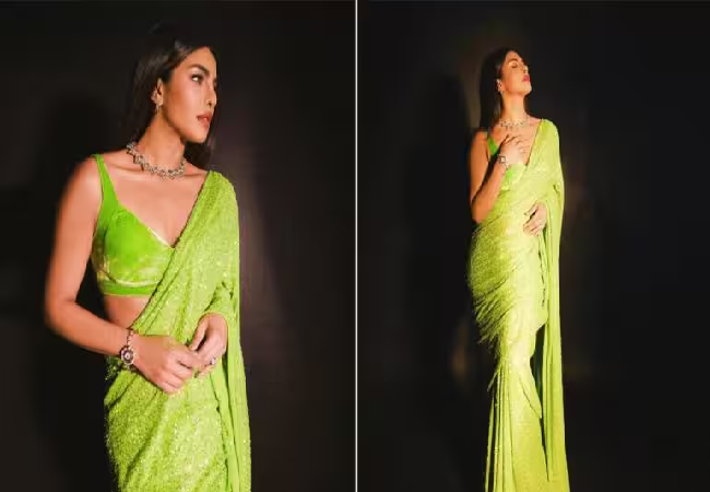 प्रियंका चोपड़ा का हल्का फूलों वाला कढ़ाई वाला डिजाइन आपके लुक को सबका ध्यान खींचने वाला बना सकता है। ये साड़ी फेस्टिव वाइब के लिए बिल्कुल सही है और आपके स्टाइल स्टेटमेंट को भी बढ़ाएगी।