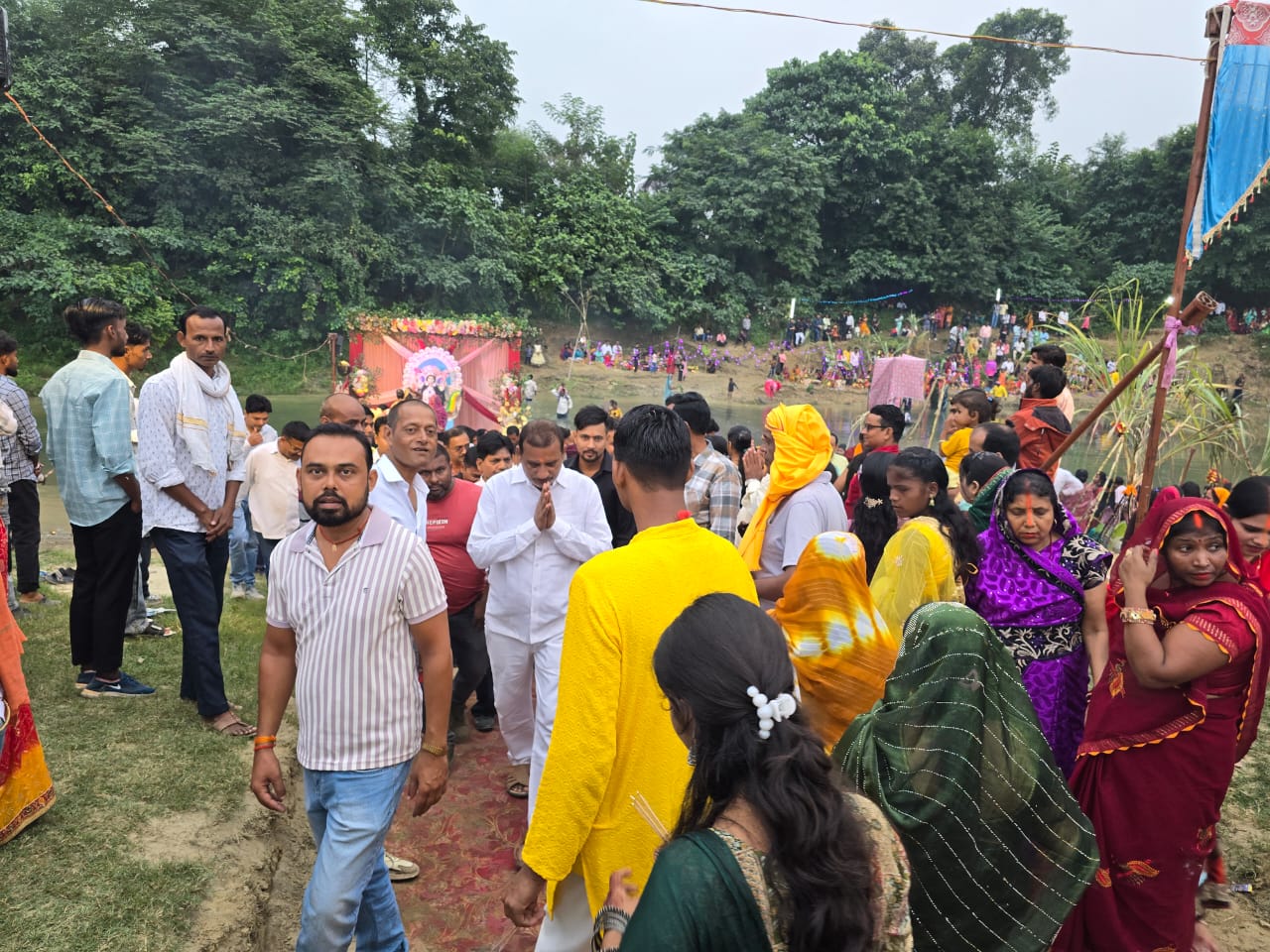 नौतनवा में डूबते सूर्य को अर्घ्य, छठ घाटों पर उमड़ी श्रद्धा की भीड़