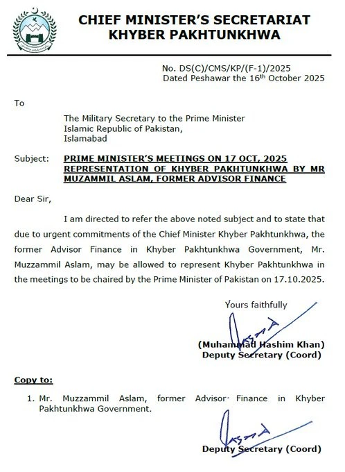 इस चिट्ठी में पीएम शहबाज (PM Shahbaz) के सैन्य सचिव से अनुरोध किया गया कि खैबर पख्तूनख्वा सरकार (Khyber Pakhtunkhwa Government) में पूर्व वित्त सलाहकार मुज्जमिल असलम (Former Finance Advisor Muzamil Aslam) को पीएम की बैठकों में प्रांत की ओर से प्रतिनिधित्व करने की मंजूरी दी जाए। सम्बंधित ख़बरें तालिबान से पिटाई, बिरादर का गुस्सा और सुलगता खैबर दर्रा।