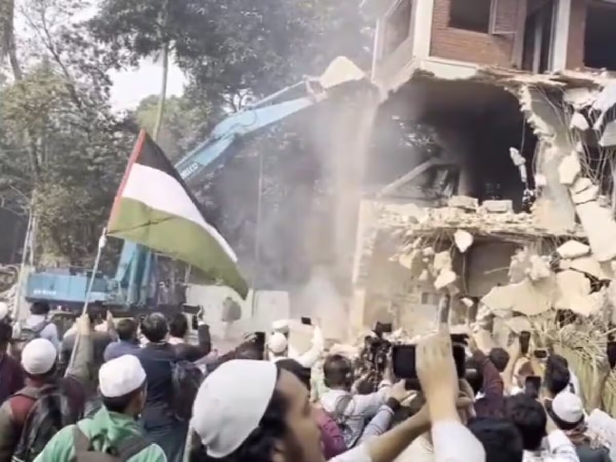 मीडिया रिपोर्ट्स के अनुसार, बांग्लादेश में शेख हसीना के विरोधी कट्टरपंथियों ने बुधवार को उनके पिता शेख मुजीबुर रहमान के धानमंडी इलाके में स्मारक और आवास पर जमकर तोड़फोड़ और आगजनी की गई थी। इसके बाद गुरुवार सुबह उनके आवास पर बुलडोजर चला दिया गया है। इस मौके पर एक प्रदर्शनकारी के हाथ में फिलिस्तीनी झंडा भी दिखाई पड़ा। इस घटना को ऐसे वक्त पर अंजाम दिया गया है जब शेख हसीना लोगों को संबोधित करने की तैयारी कर रही थीं।