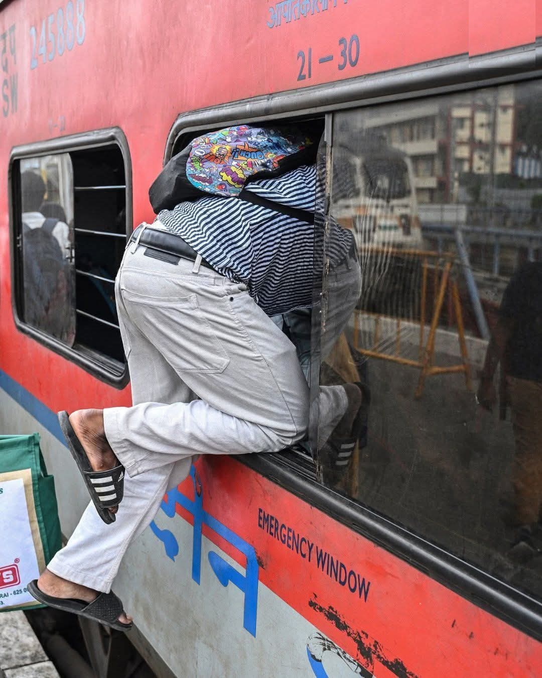 घर पहुंचे के लिए लोग जनरल कोच में घुसने के लिए धक्कामुक्की कर रहे, आरक्षित बोगी में बिना टिकट सफर कर रहे। सोशल मीडिया पर वायरल एक वीडियो में मिथिलेश नामक यात्री चादर का झूला बनाकर 12 घंटे लटका रहा।