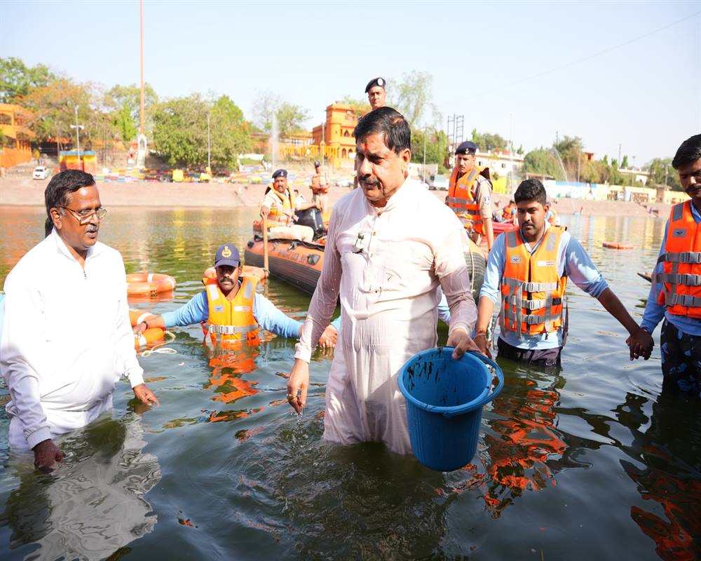 सबसे पहले उन्होंने जल गंगा संवर्धन अभियान के अंतर्गत मां शिप्रा नदी के रामघाट पर पहुंचकर घाट की सफाई की। इससे उन्होंने उज्जैन शहर के लोगों को यह संदेश दिया कि मोक्षदायिनी उत्तर वाहिनी पुण्यसलिला मां शिप्रा का आंचल हमेशा साफ रहे। प्रत्येक नागरिक का यह कर्तव्य बनता है कि मां शिप्रा को स्वच्छ बनाने में अपना योगदान भी दे।इसके बाद सीएम ने मां शिप्रा में स्नान कर डुबकी लगाई और मां शिप्रा का पूजन अभिषेक किया।