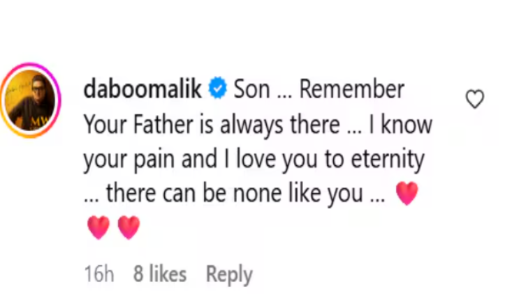 अमाल की इस पोस्ट पर उनके पिता डब्बू मलिक ने भावुकता जाहिर की है। उन्होंने कमेंट करते हुए लिखा कि बेटा… याद रखना तुम्हारे पिता हमेशा तुम्हारे साथ हैं। मैं तुम्हारा दर्द समझता हूं और तुमसे बहुत प्यार करता हूं। तुम्हारे जैसा कोई नहीं है।