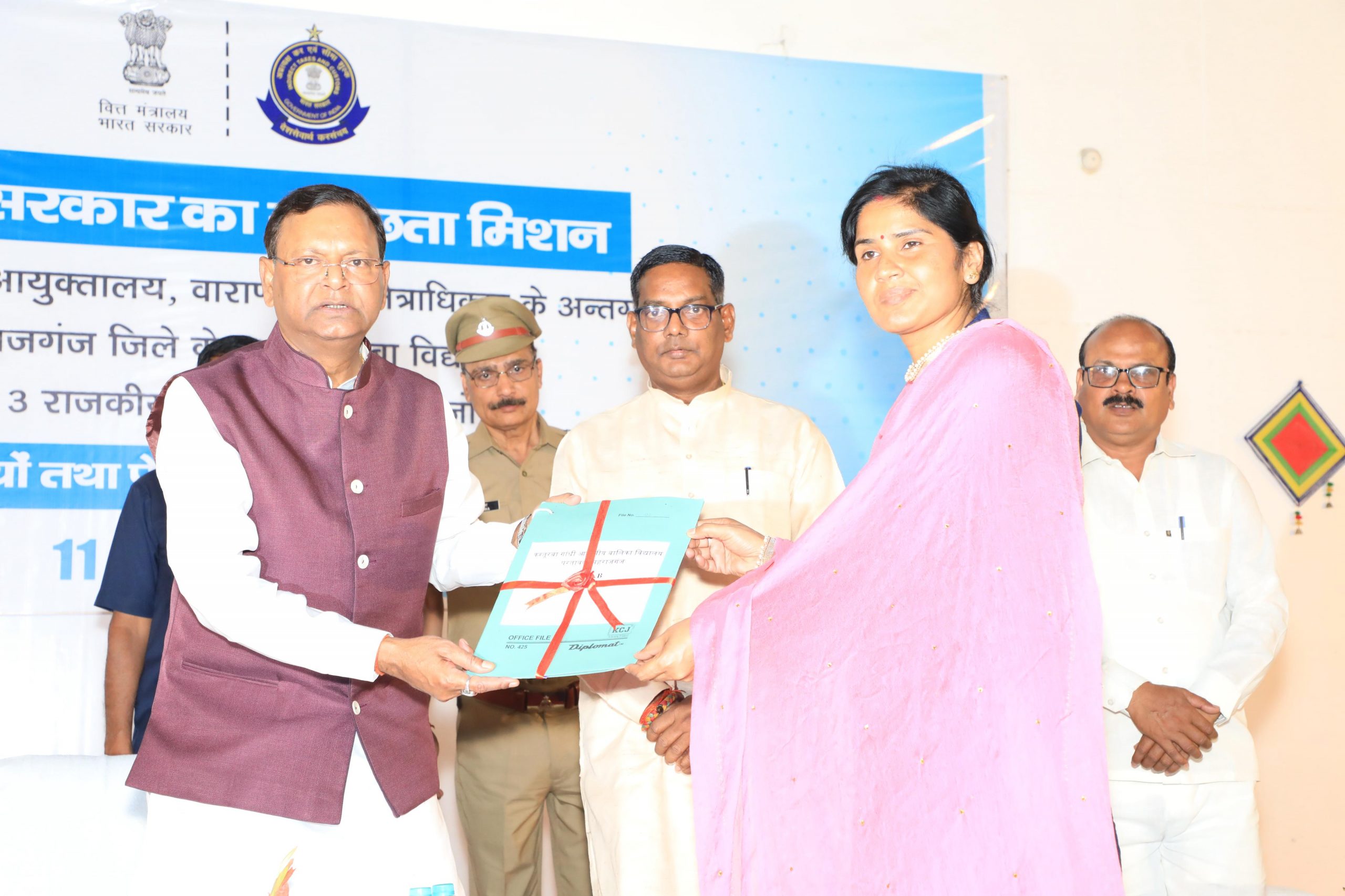 लोकार्पण कार्यक्रम के पश्चात जय प्रकाश नारायण सर्वोदय विद्यालय, धनेवा धनेई में आयोजित समारोह में केन्द्रीय मंत्री ने सभी संबंधित विद्यालयों के प्रधानाचार्यों को अधिकार पत्र सौंपे।