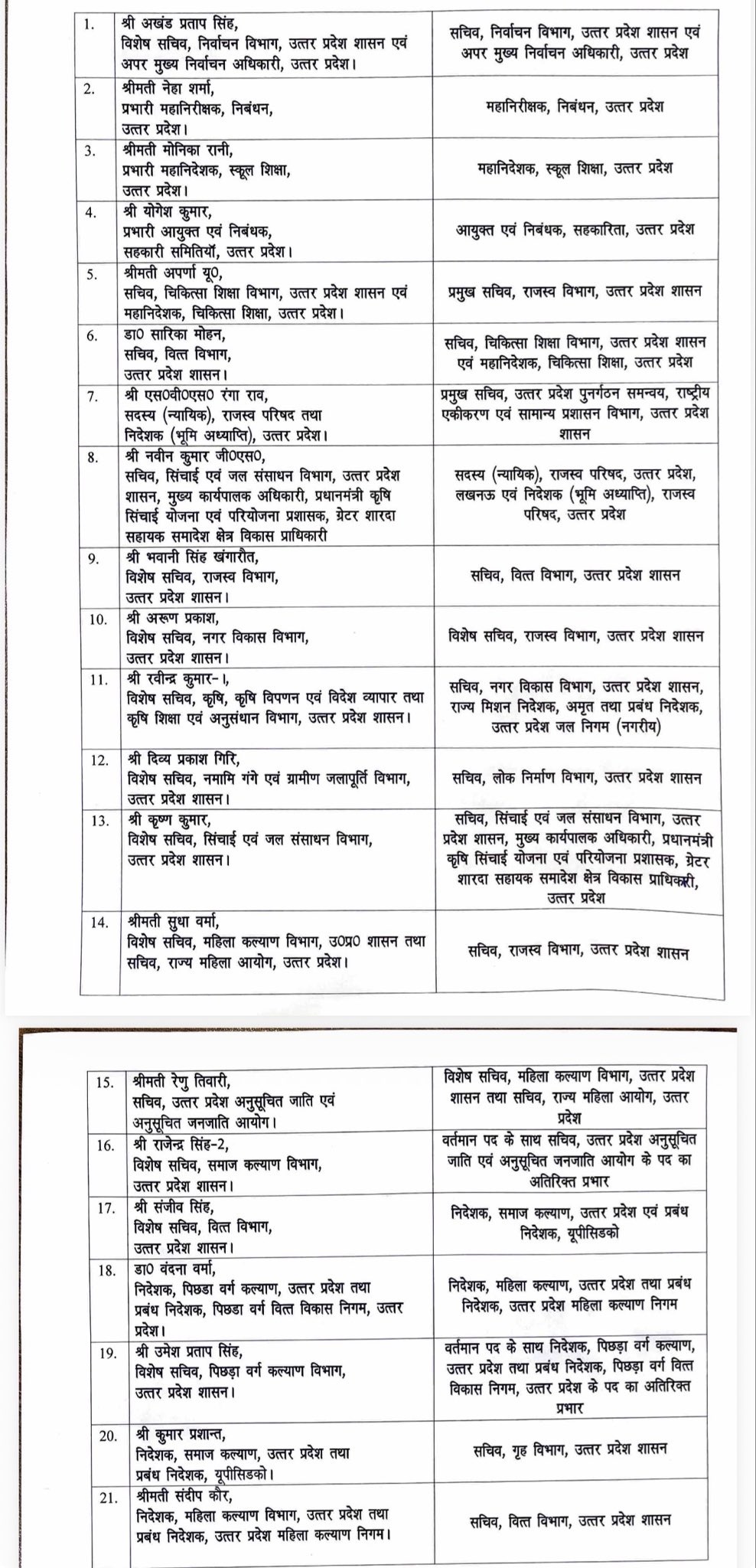 उत्तर प्रदेश सरकार ने बीती देर रात 21 आईएएस अफसरों के तबादले कर दिए। इसमें सचिव से प्रमुख सचिव बनने वाली अपर्णा यू को सचिव चिकित्सा शिक्षा विभाग से हटाकर राजस्व विभाग में प्रमुख सचिव बनाया गया है।
