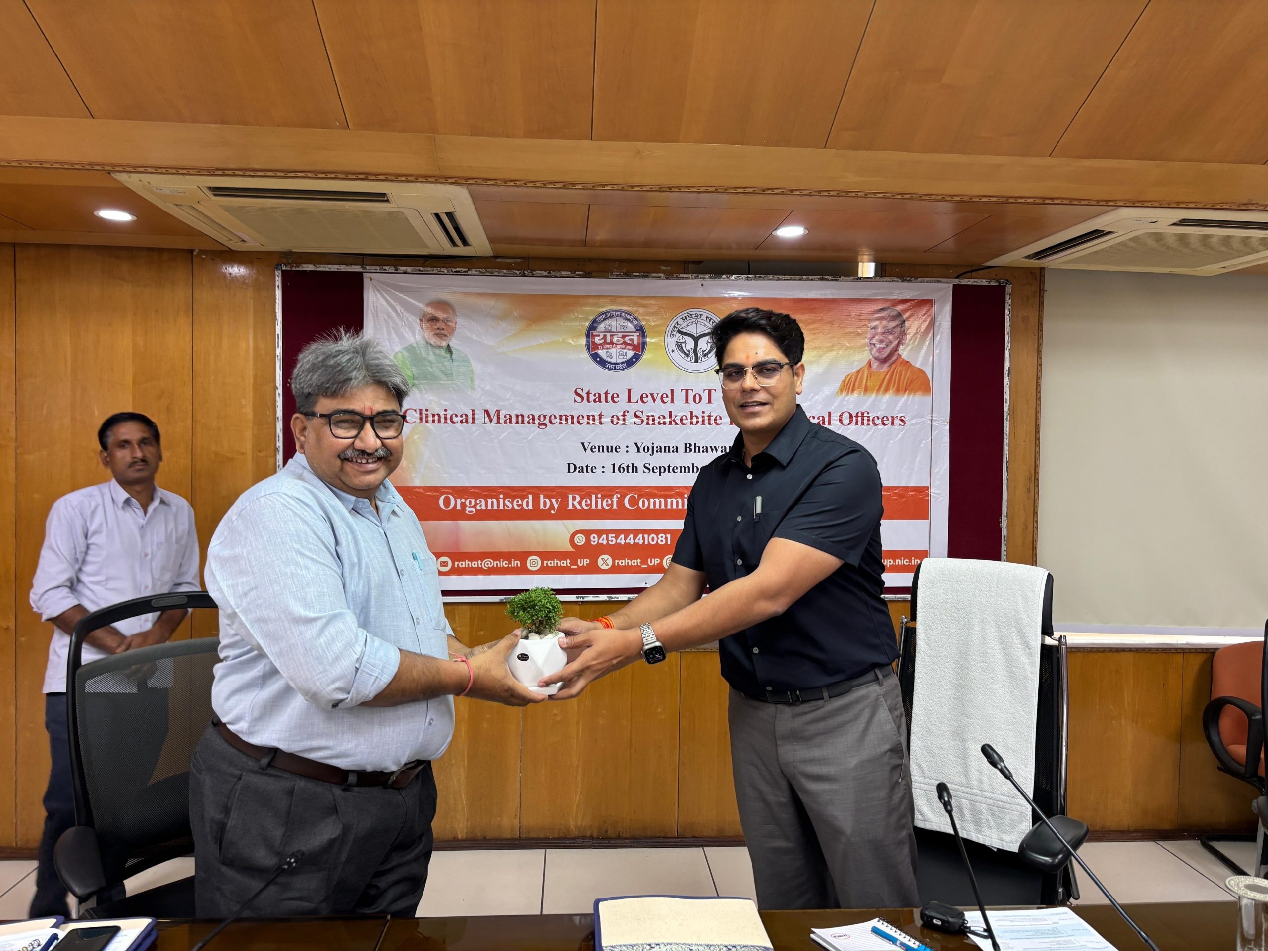 भानु चन्द्र गोस्वामी ने कहा कि राहत आयुक्त कार्यालय के हेल्पलाइन नम्बर 1070 पर नजदीकी स्वास्थ केन्द्र और उस पर एंटी स्नेक वेनम की उपलब्धता हेतु मैपिंग करायी जा रही है। राहत आयुक्त कार्यालय द्वारा चिकित्सकों के अतिरिक्त फील्ड में कार्यरत नाॅन टेक्निकल स्टाफ को भी प्रशिक्षित किया जाएगा, जिससे सर्पदंश पीड़ित को त्वरित चिकित्सा हेतु एम्बुलेंस से लेकर इलाज तक कोई कठिनाई न उठानी पड़े। उन्होंने बताया कि जिन चिकित्सकों को मास्टर ट्रेनर के रूप में प्रशिक्षित किया जा रहा है, वे अपने-अपने जनपदों के जिला अस्पतालों, सीएचसी, पीएचसी तथा अन्य चिकित्सालयों के इमरजेंसी ऑफिसर को सर्पदंर्श के आपातकाल उपचार के लिए प्रशिक्षित करेंगे।