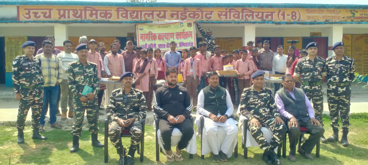 पर्दाफाश न्यूज़ ब्यूरो महराजगंज :: एसएसबी की 66वीं वाहिनी द्वारा नागरिक कल्याण कार्यक्रम का आयोजन नई कोट स्थित प्राथमिक विद्यालय में किया गया। इस कार्यक्रम के मुख्य अतिथि नौतनवा ब्लॉक प्रमुख राकेश मद्धेशिया रहे।