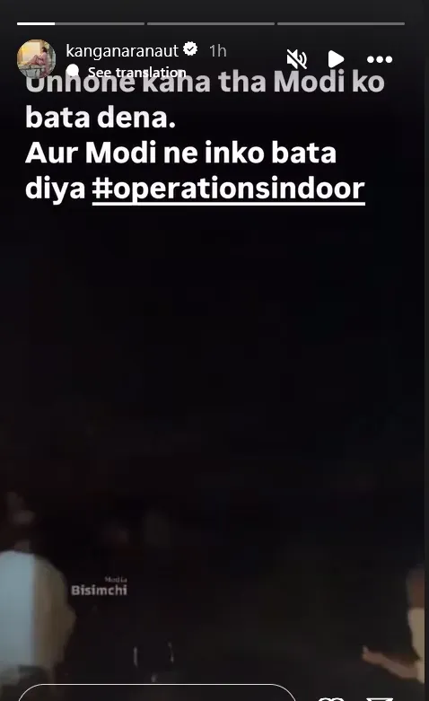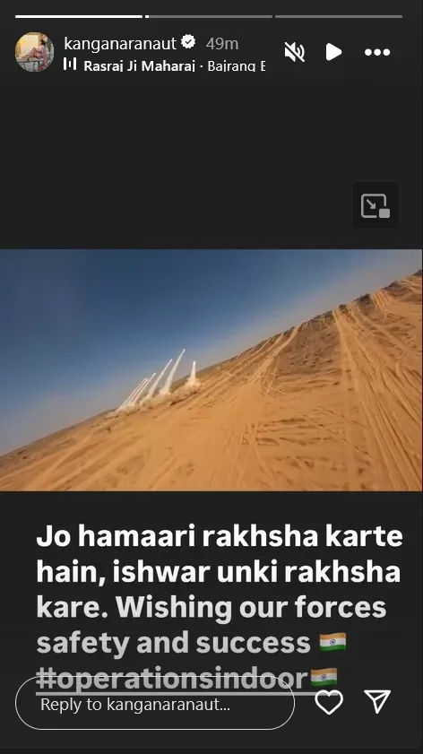 कंगना रनौत ने पोस्ट शेयर करते हुए लिखा, ‘उन्होंने कहा था मोदी को बता देना. और मोदी ने इनको बता दिया.’ वहीं एक्ट्रेस ने दूसरी पोस्ट में लिखा- जो हमारी रक्षा करते हैं, ईश्वर उनकी रक्षा करे. फोर्स की सेफ्टी और सक्सेस की कामना करती हूं. ऑपरेशन सिंदूर.