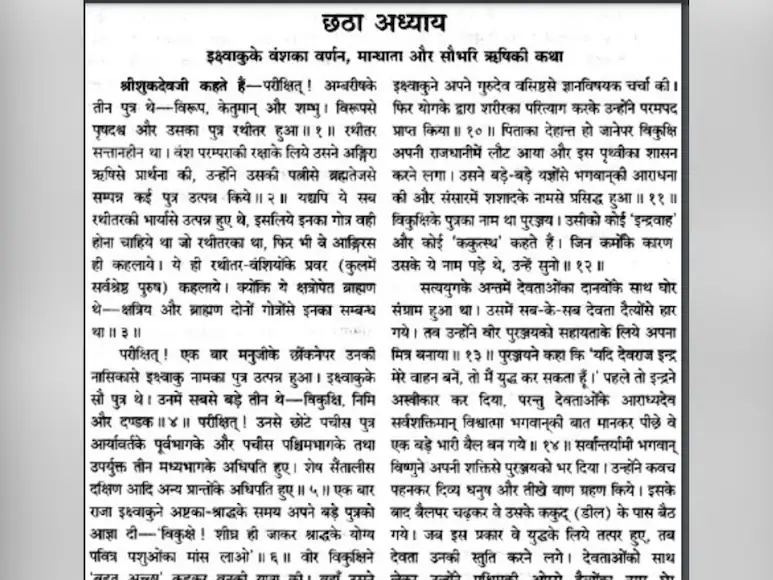 भागवत पुराण के नवम स्कन्ध के छठे अध्याय में इक्ष्वाकु के वंश का वर्णन मिलता है, इसके साथ ही मांधाता की कहानी का भी उल्लेख किया गया है। उनकी कहानी को जानने से पहले, आपको भगवान राम के पूर्वजों (Ancestors of Lord Rama) के बारे में जान लेना चाहिए, क्योंकि भी वो भी हमारे स्वर्णिम इतिहास का हिस्सा हैं।