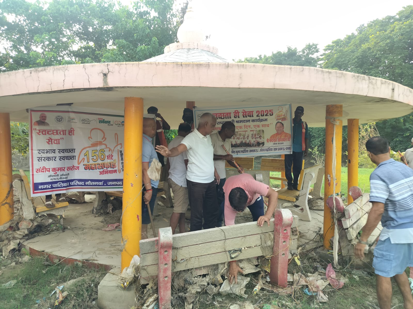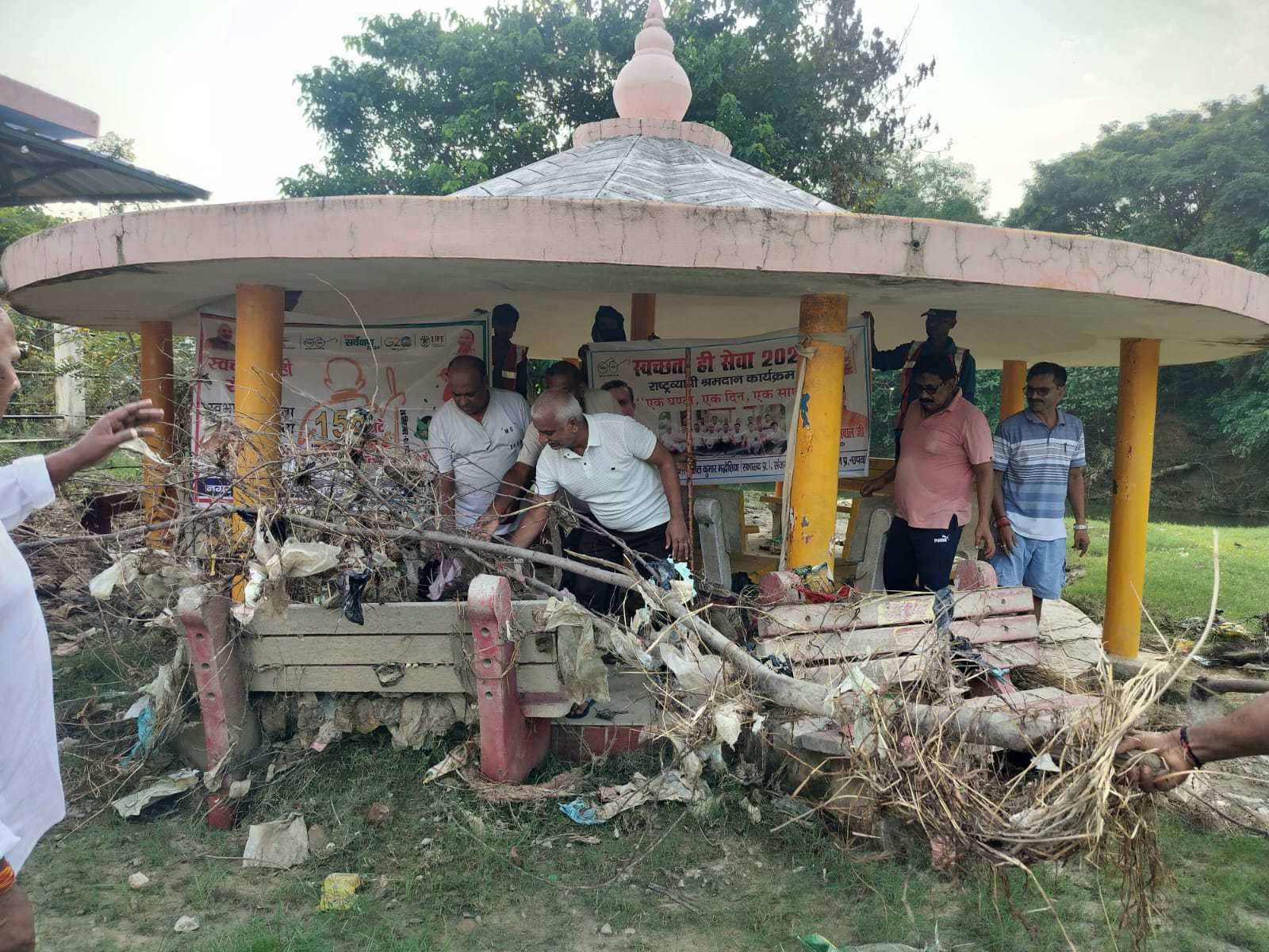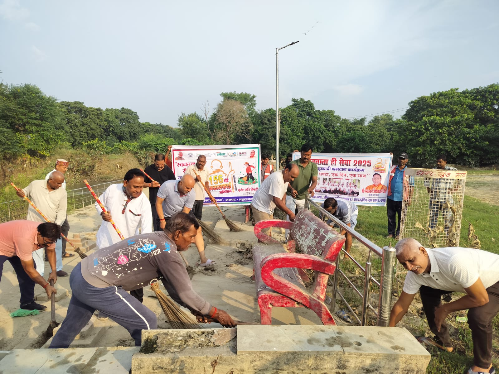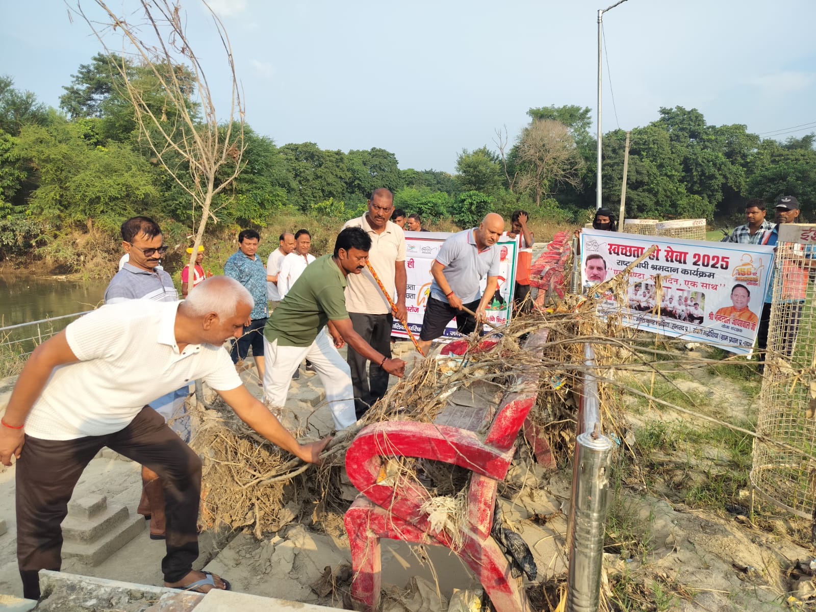 पर्दाफाश न्यूज़ ब्यूरो महराजगंज :: ‘स्वच्छता ही सेवा पखवाड़ा’ के तहत चल रहे “एक घंटा, एक दिन, एक साथ” कार्यक्रम में सोमवार को नगर पालिका अध्यक्ष बृजेश मणि त्रिपाठी व योगा परिवार नौतनवा ने दोमुहान स्थित छठ घाट पर श्रमदान किया। दोनों ने संयुक्त रूप से एक घंटे तक सफाई अभियान चलाकर स्वच्छता का संदेश दिया।