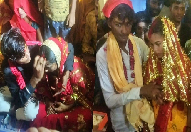 किसी ने सच कहा है की प्यार अंधा होता है। प्यार की कोई सीमा नहीं होती है ये कहावत एक बार फिर सच साबित हुई है। ये खबर है उत्तर प्रदेश के लखीमपुर खीरी जिले की यहां दो मुस्लिम बहनों ने हिन्दू लड़कों से शादी रचा ली हैं। हिंदू रीति-रिवाज से जास्मीन और रुखसाना बानो स्थानीय लड़कों रामप्रवेश और सर्वेश के साथ शादी के बंधन में बंध गईं। बता दें दोनों इनके बीच काफी समय से प्रेम प्रसंग चल रहा था। दोनों बहने अपना नाम बदलकर रुखसाना अब रूबी और जास्मीन चांदनी बन गई हैं। दोनों बहनो की शादी की काफी चर्चा हो रही हैं।