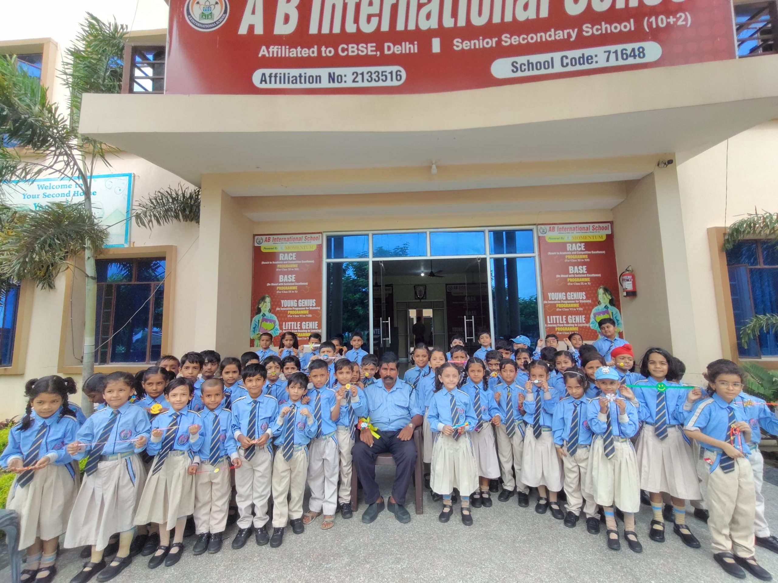 ए बी इंटरनेशनल स्कूल में राखी मेकिंग और थाली डेकोरेशन प्रतियोगिता का आयोजन किया गया। यहां एक अनोखा दृश्य देखने को मिला जब कक्षा 1 और 2 की छात्राओं ने स्कूल के गार्ड मंगल सिंह को राखी बांधी और उनसे अपनी सुरक्षा का वादा लिया।