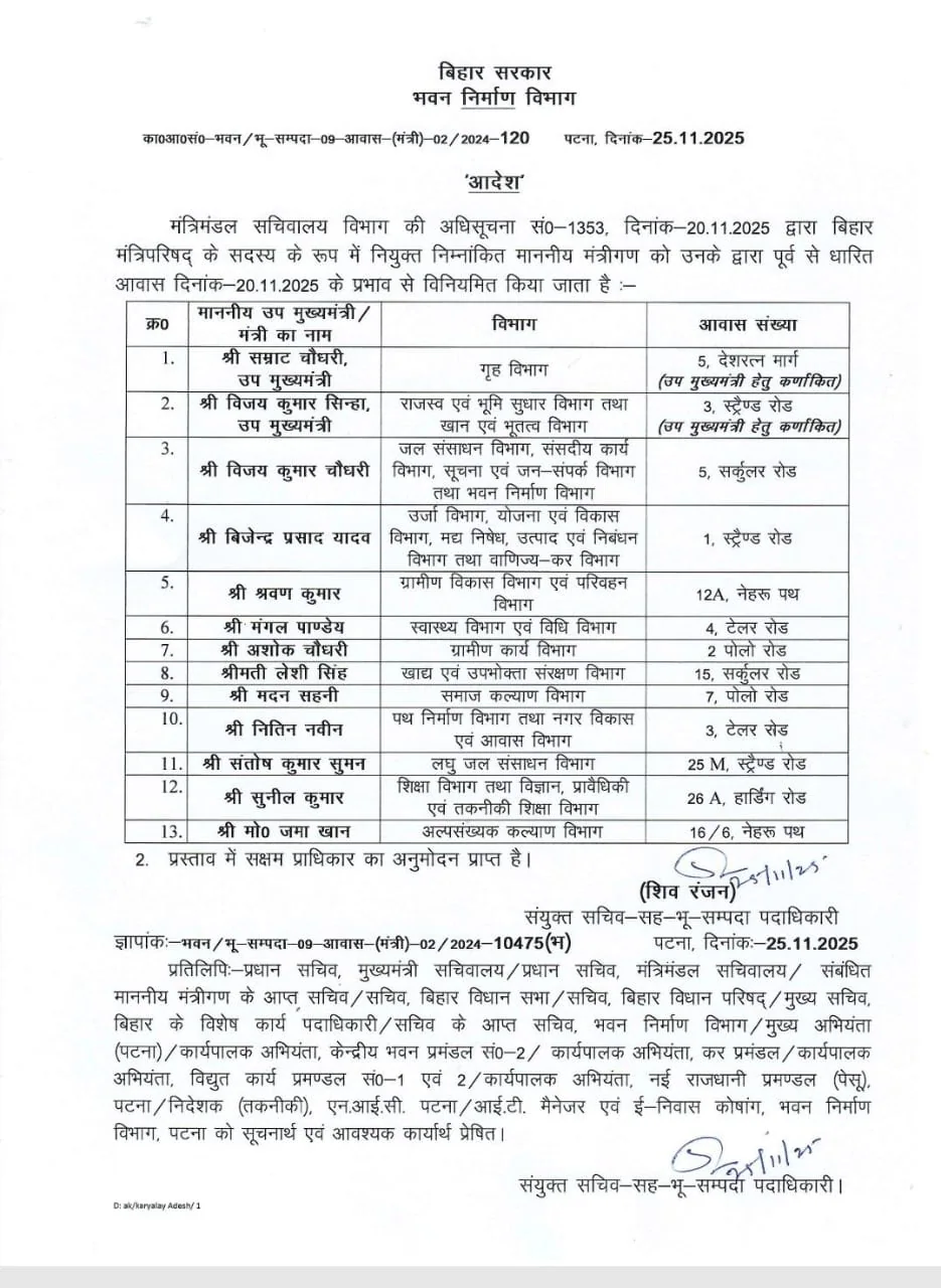 बिहार के मंत्रियों को भी आंवटित हुए आवास