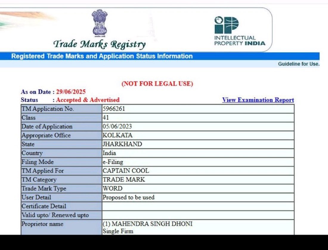 दरअसल, एमएस धोनी ने 5 जून को ट्रेड मार्क्स रजिस्ट्री पोर्टल के माध्यम से ऑनलाइन आवेदन प्रस्तुत किया। ऐसा करके, उनका उद्देश्य आधिकारिक रूप से प्रसिद्ध उपनाम का दावा करना और इसे अपने बढ़ते ब्रांड में शामिल करना है। पूर्व भारतीय कप्तान खेल प्रशिक्षण, कोचिंग सेवाओं और प्रशिक्षण केंद्रों के लिए “कैप्टन कूल” का उपयोग करने के लिए विशेष अधिकार चाहते हैं। आवेदन में शुरू में मौजूदा चिह्न के साथ संभावित भ्रम के कारण ट्रेड मार्क्स अधिनियम की धारा 11(1) के तहत बाधा आई। हालांकि, धोनी के वकीलों ने तर्क दिया कि ‘कैप्टन कूल’ ने प्रशंसकों के वर्षों के उपयोग और मीडिया कवरेज के माध्यम से सीधे उनसे जुड़ा एक विशेष अर्थ प्राप्त कर लिया है, और इस मामले में जीत हासिल की।