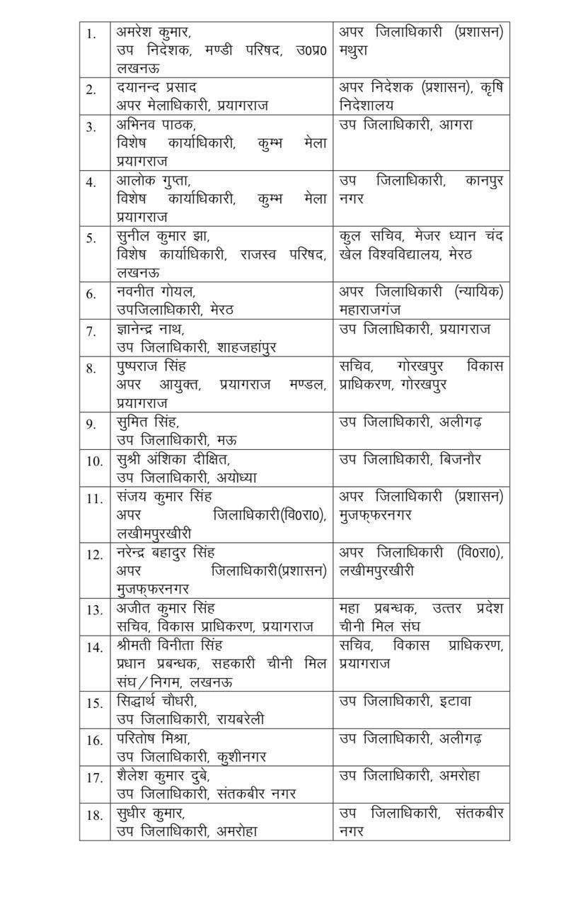 यूपी में गुरुवार को 18 सीनियर पीसीएस अफसरों के तबादले कर दिए गए हैं।