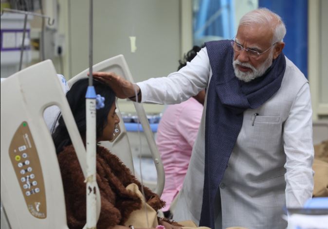 नई दिल्ली। प्रधानमंत्री नरेंद्र मोदी भूटान के अपनी दो दिवसीय दौरे से वापस लौटने के बाद एयरपोर्ट से सीधे एलएनजेपी अस्पताल पहुंचे हैं, जहां प्रधानमंत्री दिल्ली कार ब्लास्ट के घायलों से मुलाकात कर रहे हैं। इस दौरान वो घायलों से बातचीत कर घटना के बारे में भी जानकारी ले रहे हैं। साथ ही, डॉक्टरों को बेहतर उपचार करने के निर्देश भी दिए।