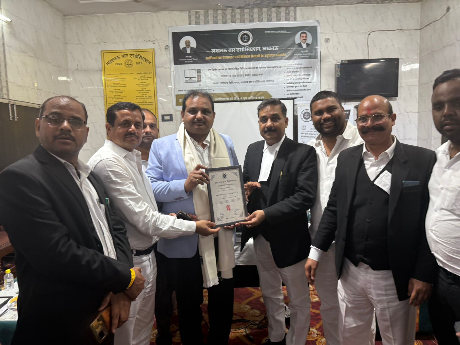 लखनऊ। लखनऊ बार एसोसिएशन की आधिकारिक वेबसाइट एवं डिजिटल सेवाओं के उद्घाटन समारोह में मुख्य अतिथि के रूप में सदस्य एवं बार काउन्सिल उ.प्र. के पूर्व अध्यक्ष प्रशान्त सिंह अटल शामिल हुए। इस दौरान उन्होंने कौटिल्य विधि भवन लखनऊ बार एसोसिएशन पहुंचकर अधिवक्ताओ को संबोधित किया।