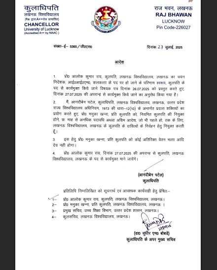 लखनऊ विश्वविद्यालय के निवर्तमान कुलपति प्रो. आलोक कुमार राय ने आज दोपहर में प्रति कुलपति प्रोफेसर मनुका खन्ना कार्यभार सौंप दिया।