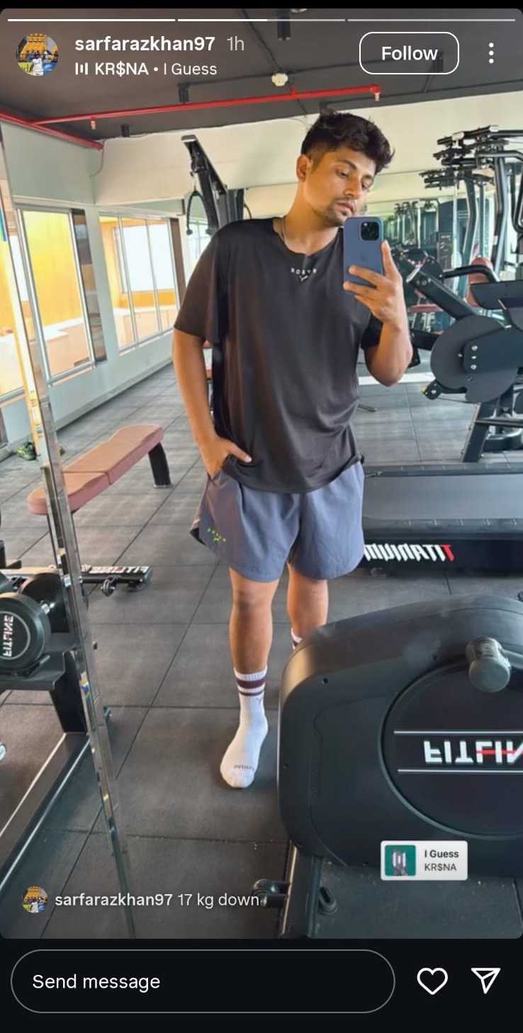 दरअसल, सरफराज खान ने अपने इंस्टाग्राम स्टोरी में एक फोटो शेयर की है, जिसमें वह पहले के मुकाबले काफी दुबले लग रहे हैं। उनकी यह फोटो देखकर हर कोई हैरान है। यही नहीं सरफराज के पिता और उनके कोच नौशाद खान ने भी अपना काफी वजन घटाया है। नौशाद खान के छोटे बेटे मुशीर ने अपने पिता का ट्रांसफॉर्मेशन वीडियो शेयर किया है। जिसमें उन्होंने कुल 22 किलो वजन कम किया है। पहले वो 122 किलो के थे और अब उनका वजन घटकर 100 किलो रह गया है। माना जा रहा है कि नौशाद खान ने अपने साथ-साथ बड़े बेटे सरफराज के फिटनेस पर भी काम किया हो।