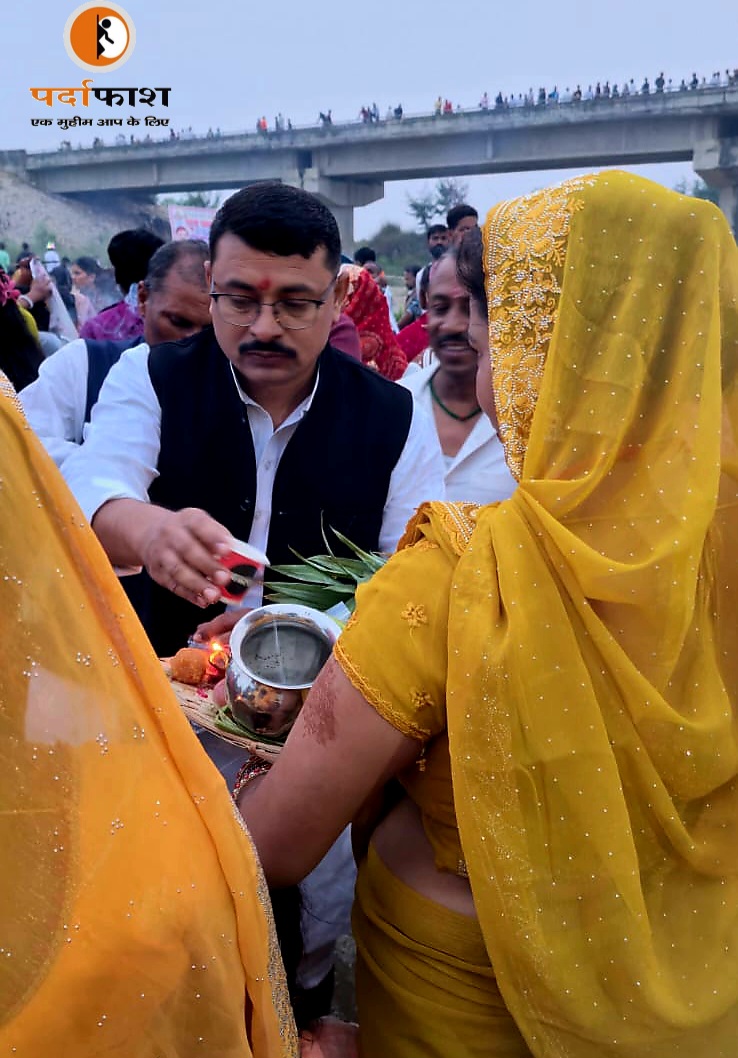 छठ घाट पर सपा नेता बैजू यादव ने किया श्रद्धालुओं का स्वागत, प्रसाद व दूध किया वितरण