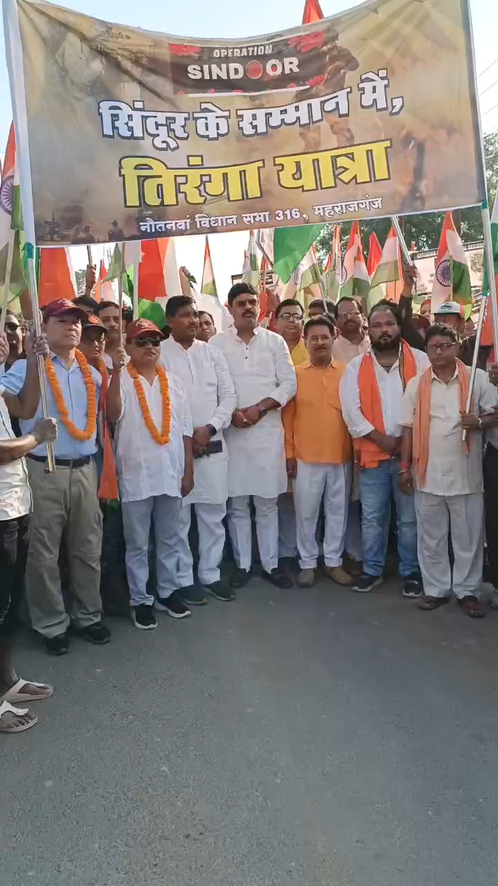 पर्दाफाश न्यूज़ ब्यूरो महराजगंज:: पाकिस्तान के आतंकी ठिकानों को नेस्तनाबूद कर भारतीय सेना द्वारा चलाए गए ऑपरेशन सिंदूर की सफलता के उपलक्ष्य में शुक्रवार को महराजगंज जनपद के सोनौली में भव्य तिरंगा शौर्य सम्मान यात्रा निकाली गई। यह यात्रा देश की एकता, अखंडता, और संप्रभुता की रक्षा के लिए भारतीय सेना के अदम्य साहस को सलाम करने का प्रतीक बनी। विधायक नौतनवा ऋषि त्रिपाठी के नेतृत्व में निकाली गई इस यात्रा में हजारों लोगों ने हिस्सा लिया ।