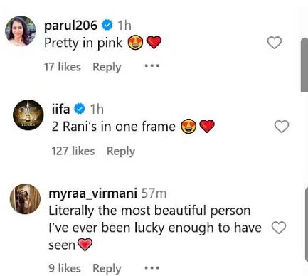 आपको बतादें कि आलिया की तस्वीर में आप देख सकते है कि आलिया भट्ट ने कार्यक्रम में हल्के गुलाबी रंग की साड़ी पहन रखी है । वहीं आलिया की तस्वीर पर कई यूजर्स ने कमेंट भी किए हैं। आपको बतादें कि एक यूजर ने कमेंट करते हुए लिखा है ‘एक फ्रेम में दो रानी।’ एक दूसरे यूजर ने कमेंट किया है ‘गुलाबी में खूबसूरत लग रही हो।’ ये था आलिया का रेखा के लिये प्यार रेखा को ज्यादा प्यार जताने के लिए आलिया ने किया ये सारे काम बहुत प्यारी हो आलिया तुम।