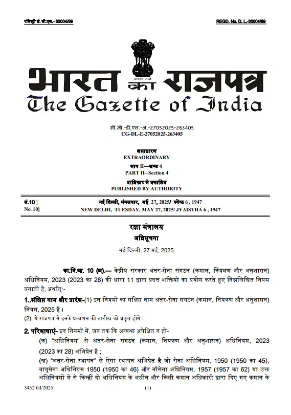 Government has notified the Rules under Inter-Services Organisations (Command, Control & Discipline) Act 2023. This marks the full operationalisation of the Act, empowering Commanders-in-Chief and Officers-in-Command of ISOs with authority over personnel from all three services…