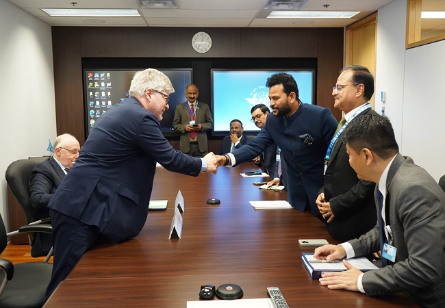 नई दिल्ली। केंद्रीय नागरिक उड्डयन मंत्री राम मोहन नायडू किंजरापु (Union Civil Aviation Minister Ram Mohan Naidu Kinjarapu) ने कनाडा के मॉन्ट्रियल में आयोजित अंतर्राष्ट्रीय नागरिक उड्डयन संगठन (ICAO) की 42वीं आम सभा में भारत का प्रतिनिधित्व किया। सोशल मीडिया प्लेटफ़ॉर्म X पर एक पोस्ट में मंत्री ने बताया कि उन्होंने सभा के दौरान (ICAO) परिषद के अध्यक्ष सल्वाटोर सियाचिटानो और महासचिव जुआन कार्लोस सालाज़ार से मुलाकात की।