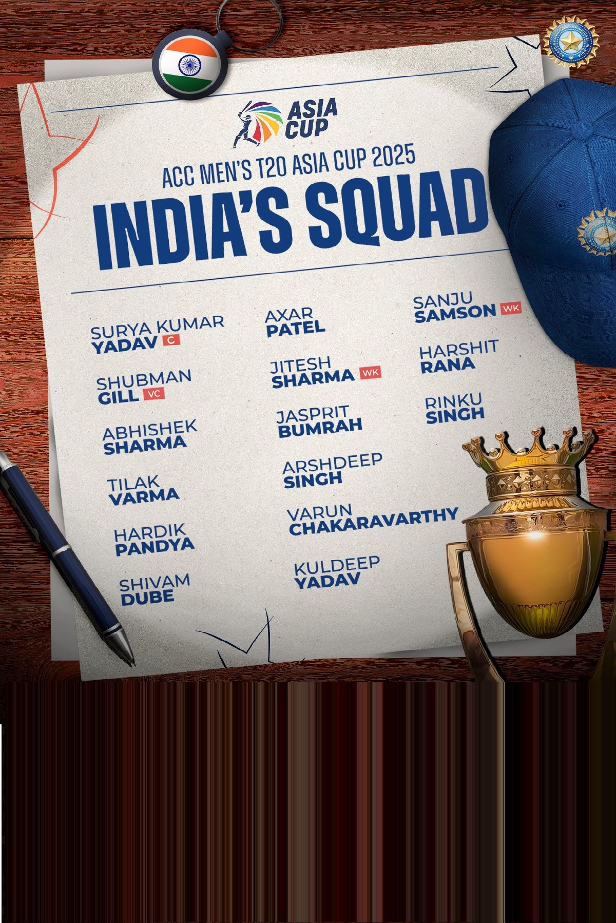 एशिया कप 2025 के लिए बीसीसीआई ने 19 अगस्त को भारतीय स्क्वाड का ऐलान किया। आइये जानते हैं कि इस स्क्वाड के प्लेयर्स का T20I में प्रदर्शन कैसा है-