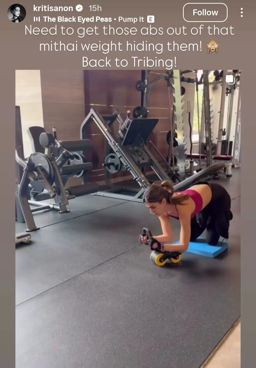 कृति सेनन (Kriti Sanon) ने इंस्टाग्राम पोस्ट शेयर की, जिसमें वह जिम में एक्सरसाइज कर रही हैं। साथ ही एक कैप्शन भी लिखा, ‘मिठाई वेट के नीचे छिपे हुए एब्स को बाहर निकालना है।’ इस लाइन के साथ वह बता रही हैं कि बहन की शादी में ज्यादा मिठाई खाकर उनका वेट बढ़ गया है। अब वह वर्कआउट से अपनी एब्स बॉडी को वापस पाना चाहती हैं।